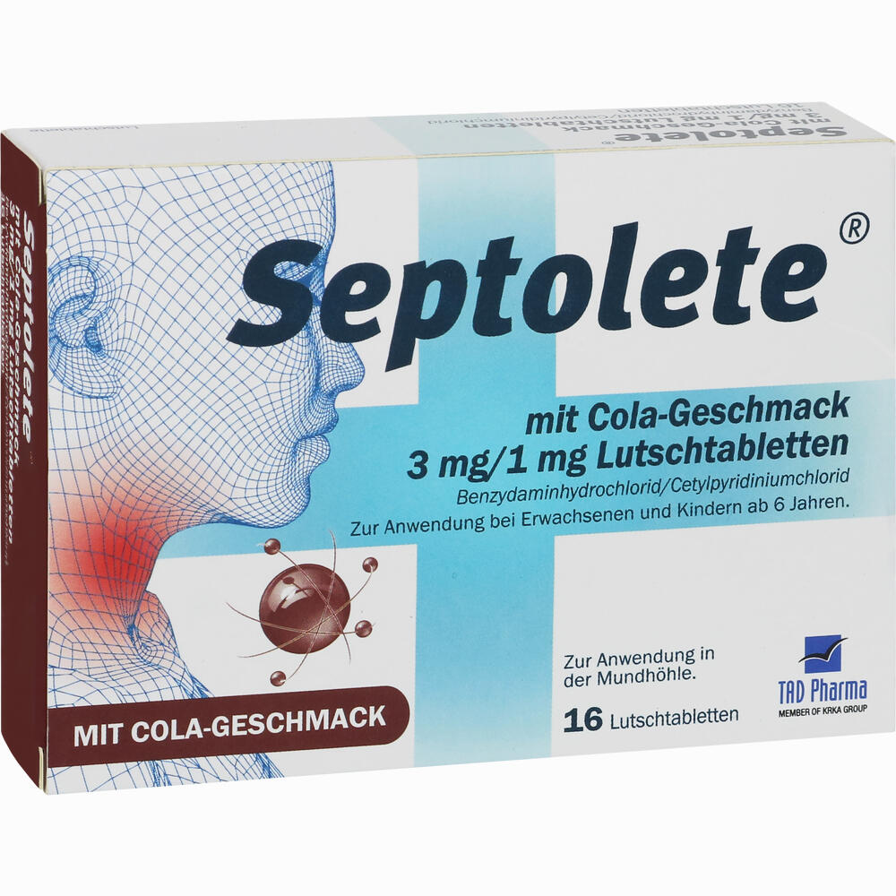 Die Preisdaten für Septolete mit Cola- Geschmack 3 Mg/1 Mg Lutschtabletten 16 Stück werden von den Apotheken zur Verfügung gestellt und stündlich aktualisiert. Zwischenzeitliche Änderung der Preise, Rangfolge und Versandkosten sind möglich.